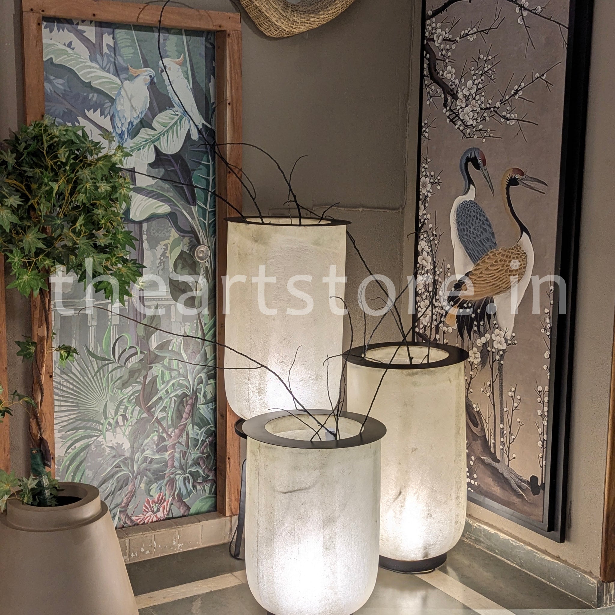 AWL-108Big Size : Big Dia 17.5" x Ht 32"SmalSize : Small Dia 17.5" x Ht 26"* Outdoor grade composite.* Twigs included.* Aluminium rim base.* Outdoor LED lights.